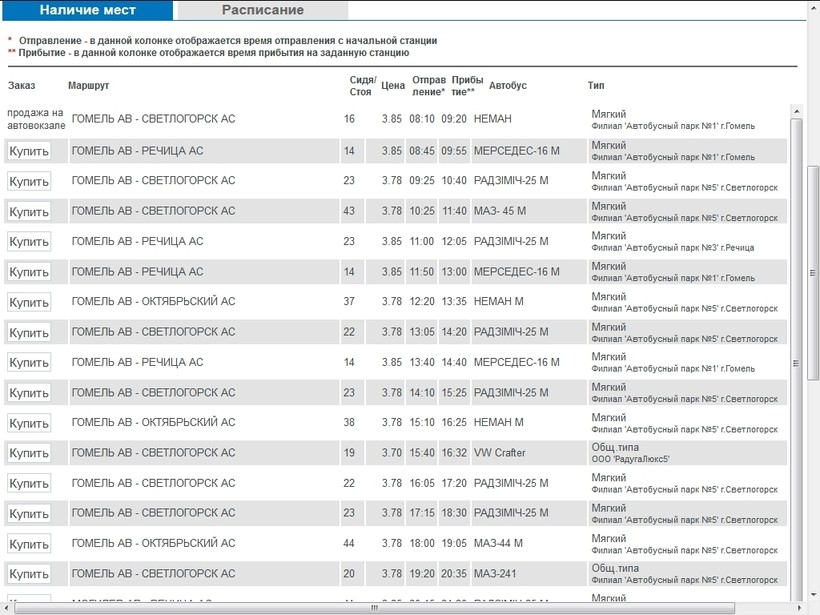 Билеты на такие автобусы как Гомель — Светлогорск или Гомель — Речица стоили 3,85 белорусских рублей (≈1,57€).