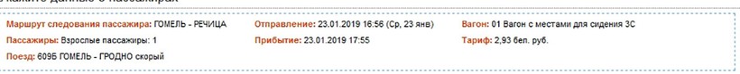 На электрички Гомель — Речица, Гомель — Клинковичи билет стоит всего 1,04 белорусских рубля (≈0,42€). А на поезд в зависимости от типа билета: в общий вагон — 2,93 белорусских рубля (≈1,20€), а плацкарт — 4,59 белорусских рубля (≈1,88€).