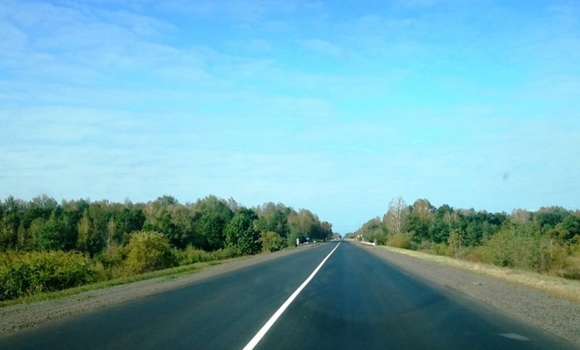 Но учтите, что дорога будет далеко не магистраль, здесь до 100 км не разгонишься. Через Гомель проходит трасса М10, Кобринская. Я выехала по ней из города, и никуда не сворачивая, доехала до Горошкова, там, на перекрестке свернула на трассу Р32, еще 10 км и я в Речице. Дорога М10 двухполосная, с небольшими колдобинами, но ничего критичного, если ехать не спеша. Дорога платная (не для машин с номерами Таможенного союза), движение было не очень оживленным.