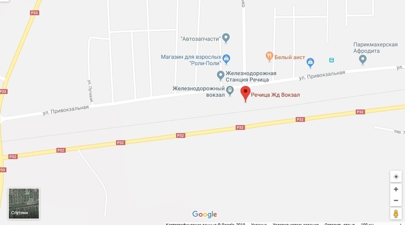 В Речице останавливаются на ж/д станции Речица (ул. Привокзальная).