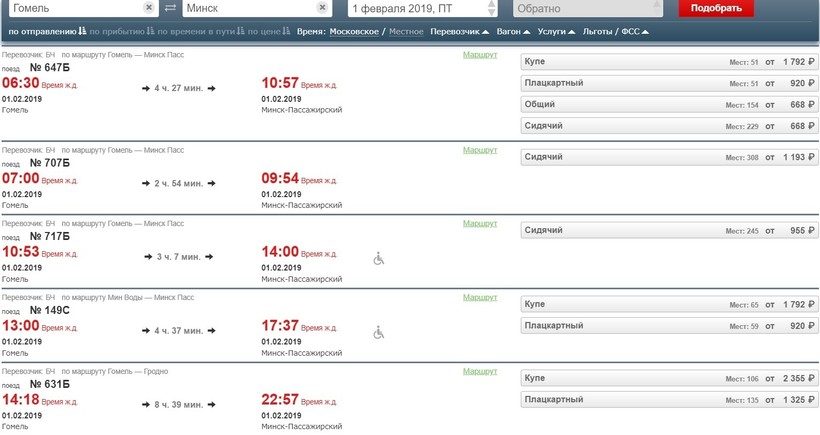 Стоимость проезда и время в пути