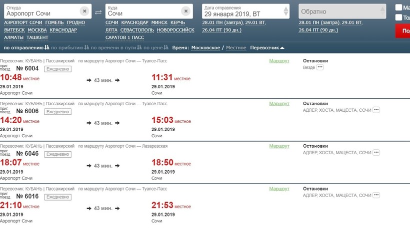 Из самого Сочинского аэропорта в город вы можете добраться на аэроэкспрессе. Один рейс есть утром, один днем и два вечером. Расписание не меняется уже очень давно.