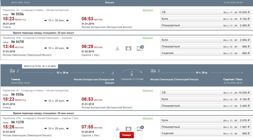 Если выберете данный вариант, то знайте, что все поезда из Гомеля прибывают именно на Белорусский вокзал, дальше вам нужно будет перебраться на Павелецкий вокзал. Для этого необходимо спуститься в метро и проехать от станции метро «Белорусская» до станции «Павелецкая». Короче путь будет по Замоскворецкой линии метро — он займет всего лишь одиннадцать минут, при поездке по Кольцевой придется потратить примерно пятнадцать минут.