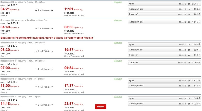 Оформить проездные документы в электронном виде вы можете на этих сайтах: «Белорусская железная дорога» и «РЖД». Также билеты продаются в кассах на железнодорожном вокзале.