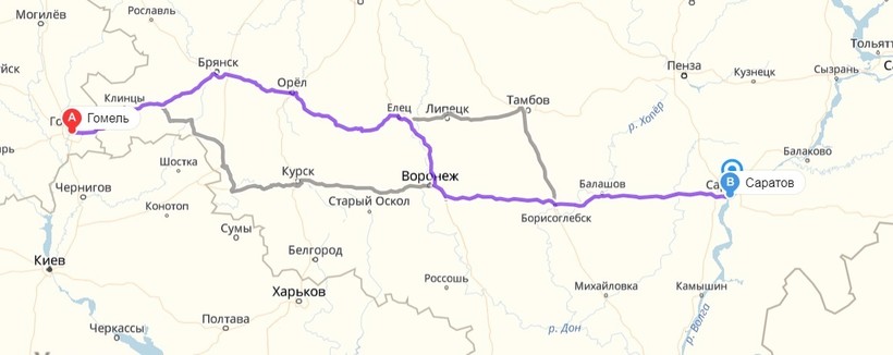 Между Гомелем и Саратовом 1300 километров. Если еду на машине, то маршрут прокладываю через эти населенные пункты:
