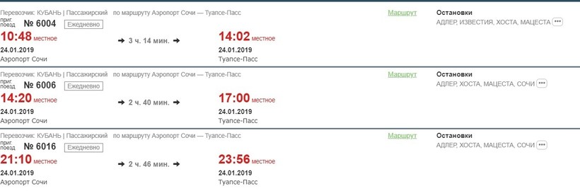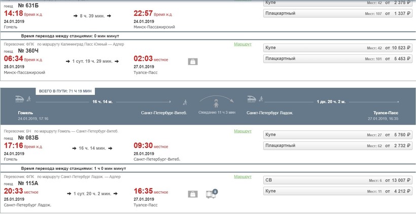 - Отправление в Туапсе в 10:52 (в пути 21 час и 30 минут).