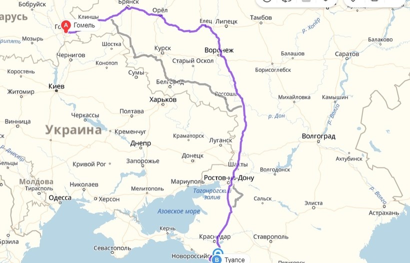 Расстояние между Гомелем и Туапсе составляет 685 километров или 426 миль по прямой и 1 553 километра или 965 миль по автодорогам.