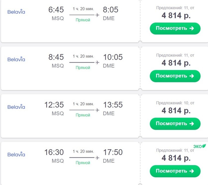 Ежедневно из аэропорта «Минск» в «Домодедово» летает от пяти до семи самолетов, все зависит от дня недели. Рейсы выполняет Belavia. В небе проведете всего лишь 1 час и 20 минут.
