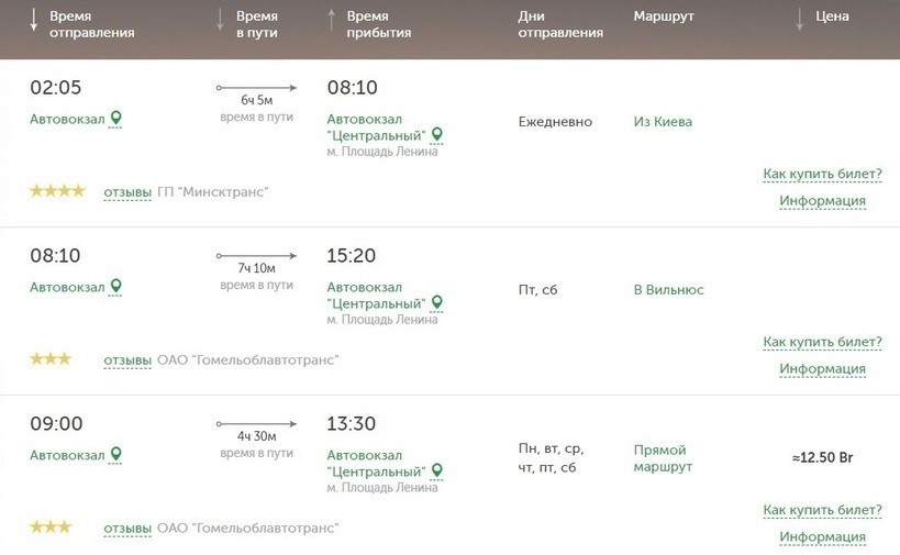 Также до Минска можете прокатиться и на автобусе. В Гомеле автостанция находится на улице Курчатова, 1. В Минске — улица Бобруйская, 6.