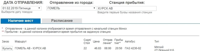 Приобрести билеты можно в кассах автовокзалов, откуда будет начинаться поездка. На рейсы из Гомеля в РФ электронный тикет можно купить здесь.