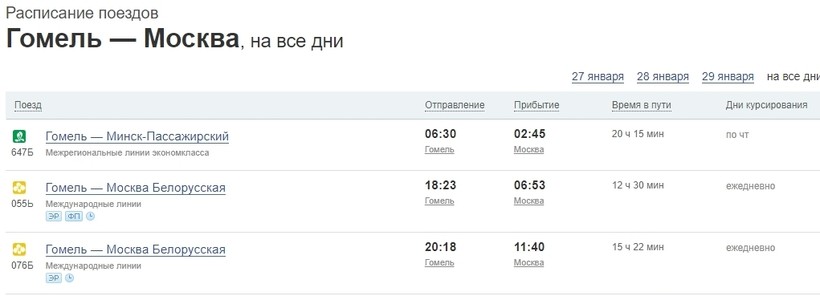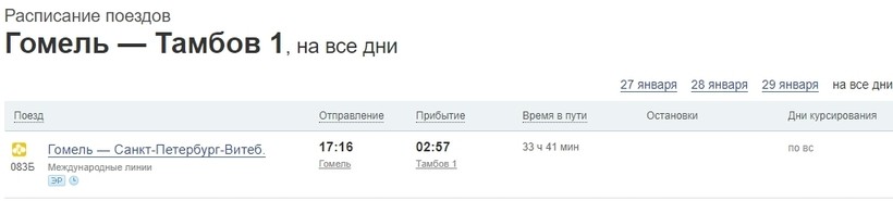 Кстати, на сайте Белорусской железной дороги при поиске рейсов я нашла инфу о том, что по воскресеньям есть возможность напрямую поехать из Гомеля в Тамбов.