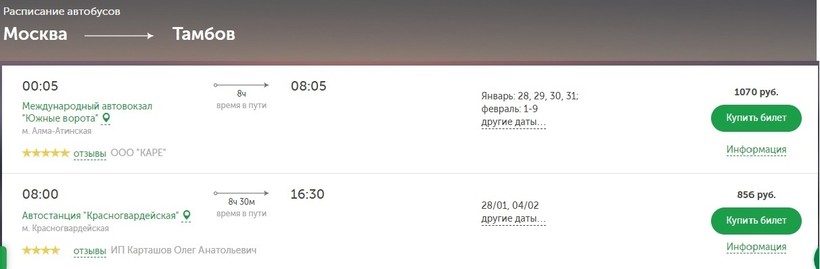 Из Москвы в Тамбов немало автобусов.