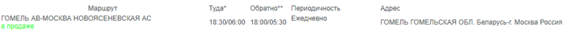 Ежедневно из Гомеля до Москвы отправляется автобус в 18:30 и преодолевает свой путь за 11,5 часов.