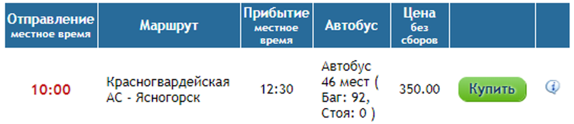 А из Москвы до Ясногорска — от 350 руб.