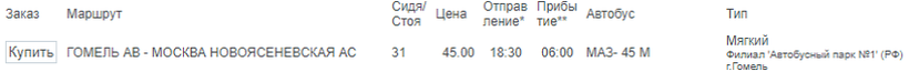Из Гомеля до Москвы билет стоит 45 BYN или 1380 руб.