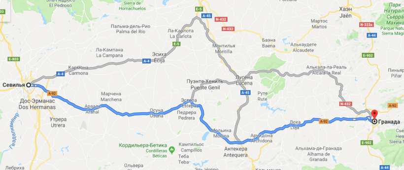 И учитывая уже эти расходы, могу сказать, что поездка в Гранаду из Севильи на машине получается не самой бюджетной. А еще больше придется потратить, если для поездки машину вы будете арендовать. Кстати, сделать это можно, например, здесь. Для аренды авто нужны будут только права, деньги и кредитная карта (для депозита). Не понадобятся дополнительные документы и для поездки по маршруту за рулем (кроме договора аренды на автомобиль), ведь Севилья и Гранада находятся в пределах одного государства.