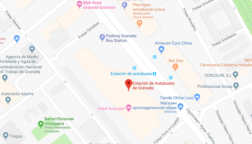 Путь из Севильи в Гранаду автобусы преодолевают за 3 часа и прибывают на центральную автостанцию Гранады на проспекте Juan Pablo II.
