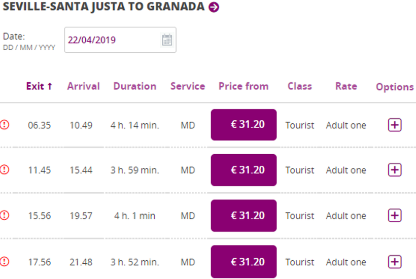 Рекомендую билет на поезд в Гранаду покупать на сайте Национальной железнодорожной сети Испании — компании Renfe. Хотя сделать это можно и на ж/д вокзале Севильи — в кассе или в специальных автоматах.