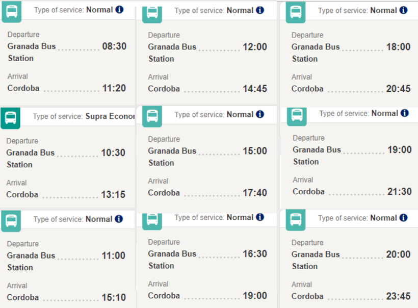 Доехать из Гранады в Кордову можно на автобусах, однако, учитывая то, что все они делают несколько остановок в пути, время в дороге составит от 2,5 до 4 часов.