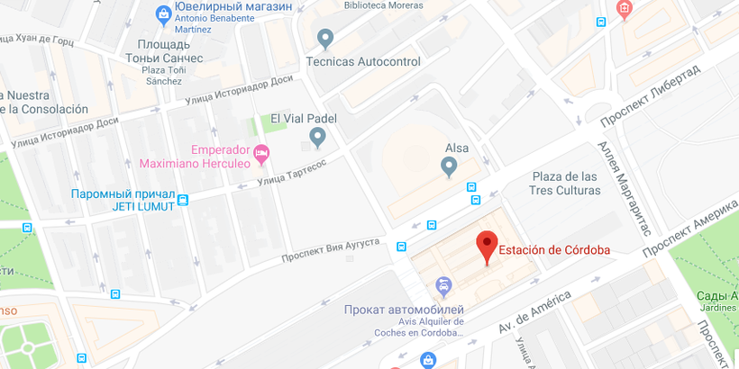 А прибывают автобусы в Кордову на автостанцию по адресу Glorieta Tres Culturas 1.