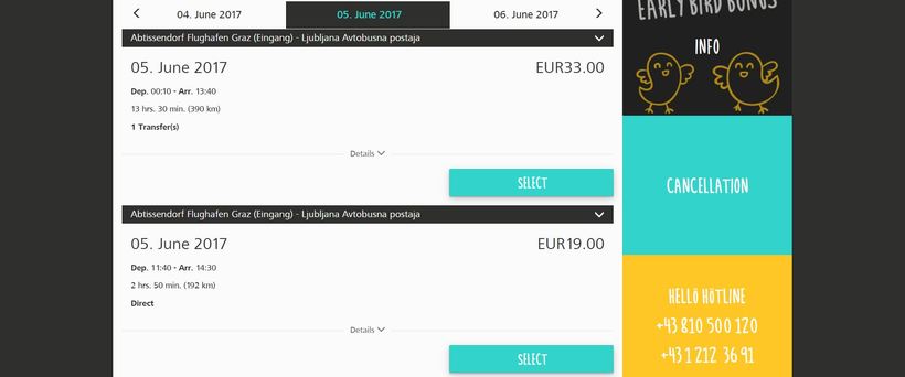 Поскольку своего автомобиля у меня не было, а путешествовать я хотел максимально бюджетно то обратил свой взор на автобусы. Как оказалось автобусные рейсы до Любляны предлагает только компания HELLÖ. Автобусы у нее выглядят вот так: