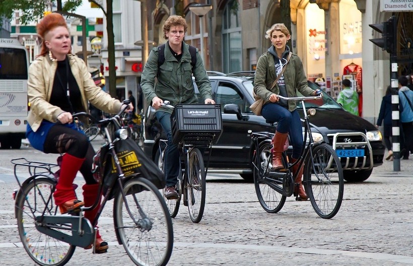 Амстердам - это очень необычный город, ведь несмотря на 800-тысячное население муниципалитета, большинство людей предпочитают ездить на велосипедах и скутерах. Они мирно уживаются на дорогах с немногочисленными автомобилистами и общественным транспортом.