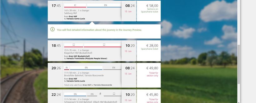 Где располагается вокзал Граца уже стало ясно выше, а вот с вокзалом Венеции мы разберемся прямо сейчас. Располагается он вот здесь: Можно искать билеты до Местре, но опять-таки прямых поездов все равно нет, так что не имеет смысла тратить свое время. Я отклонил вариант с поездом, и ни разу не пожалел об этом.