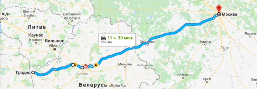 Гродно и Москву разделяет почти 1000 км, которую на машине я в среднем проезжаю за 12 часов. Дорога проходит по территории Беларуси по трассам М6 и М1, а по территории России — по Е30 (продолжение белорусской М1). Дороги преимущественно четырехполосные, как на белорусской стороне, так и на российской. Белорусские дороги, конечно, лучше, с отличным асфальтным покрытием. И хотя кое-где на российской трассе Е30 и встречаются ямы, все равно в общем качеством трассы я осталась довольна.