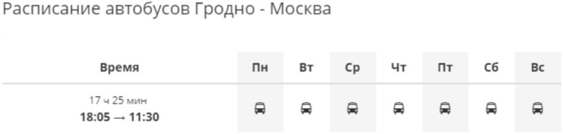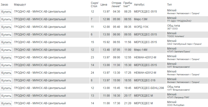 Билет в Минск из Гродно автобусом обойдется от 11 BYN или 350 руб.