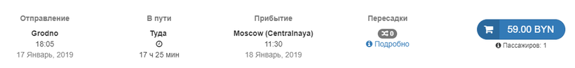 Билет по маршруту обойдется всего в 59 BYN или 1900 руб.
