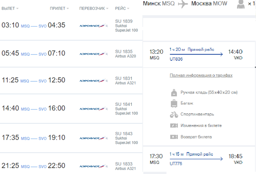 Ежедневно можно прилететь в аэропорты Москвы из Минска самолетами: