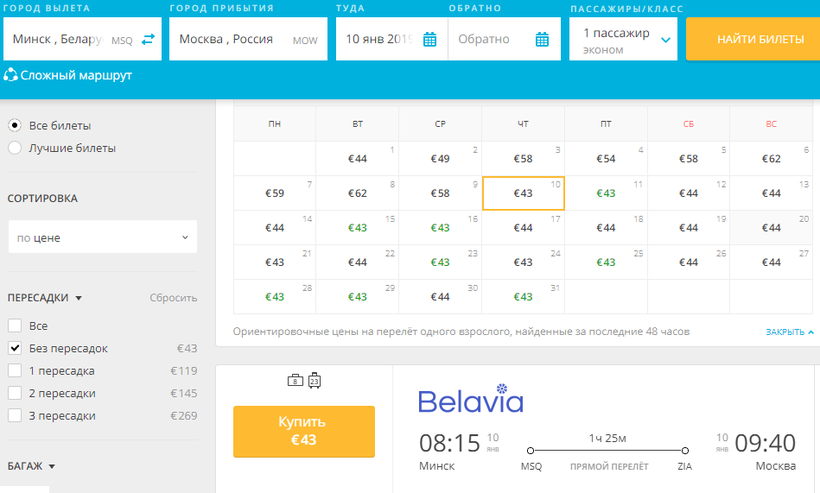 А вот цены на авиабилеты начинаются от 43 евро или 3400 руб.