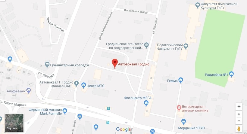 И еще один способ добраться до Гродно — на автобусе. Я садилась днем на автобусном вокзале Несвижа в автобус Солигорск — Гродно (обычно автобус приходит в 14:30, но может прийти и чуть раньше). Поездка до Гродно занимала больше пяти часов. На автовокзал Гродно (он находится на Красноармейской улице, 7А) приезжали уже к вечеру.