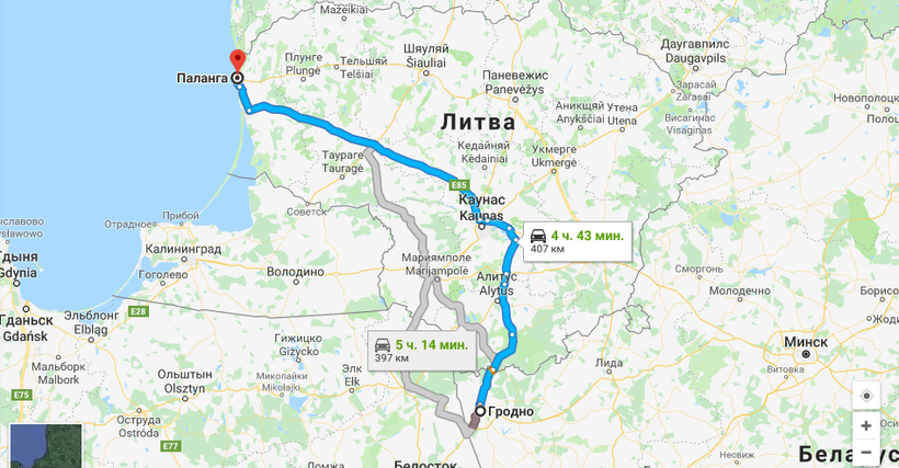 Для меня достаточно неплохим вариантом поездки деня из Гродно в Палангу стало путешествие на автомобиле. Литовскую Палангу и белорусский Гродно разделяют 407 км и международная граница, для пересечения которой нужно иметь шенген-визу.