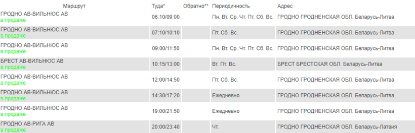 Оформить билет и узнать расписание на автобус по маршруту Гродно — Вильнюс можно на автовокзале Гродно на ул. Красноармейская 7А, но я обычно покупаю билеты через интернет на сайте автовокзала.