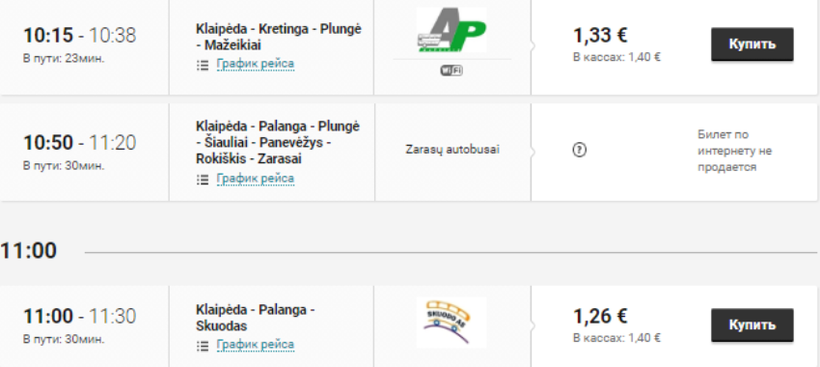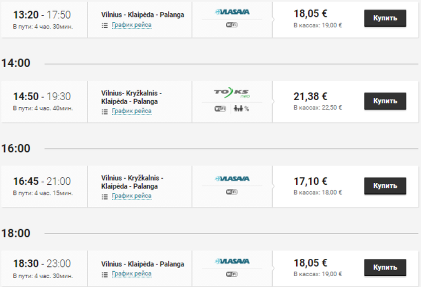 Билет из Вильнюса до Паланги я советую купить на сайте автовокзала Вильнюса, так как это дешевле, чем приобретать билеты в кассах автовокзала.