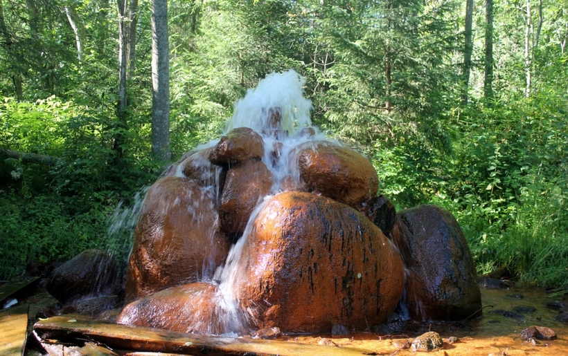 - Если ехать из города в соседнее Пестово, то в районе деревни Меглецы можно увидеть природный облагороженный фонтан.
