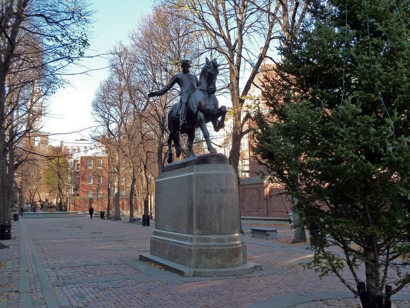 - Памятник Полу Ревиру, известному борцу за независимость, бросившему ради светлой идеи даже семейный серебряный бизнес.