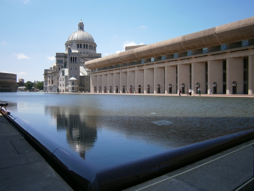 - Минималистическая Первая Церковь Христа с несколько неожиданным бассейном.