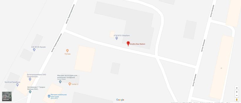 Отправление происходит с автовокзала Гродно, расположенного по адресу ул. Красноармейская, 7а: