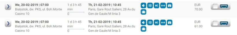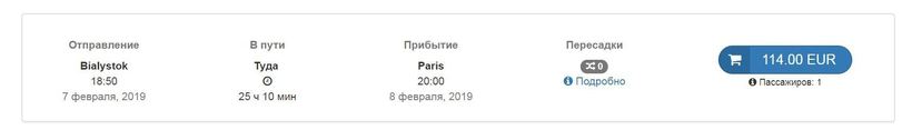Доехав до Белостока, там можно немного погулять по городу, а затем вернуться на автовокзал. Оттуда идет прямой автобус до Парижа, вот информация об этом рейсе: