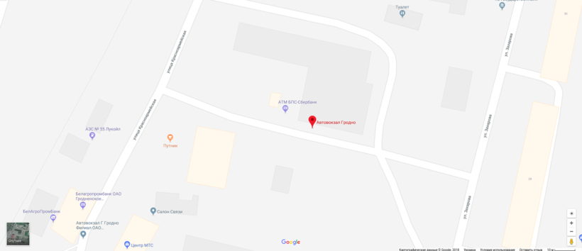 Автобусный вокзал в Гродно располагается на ул. Красноармейская, 7а: