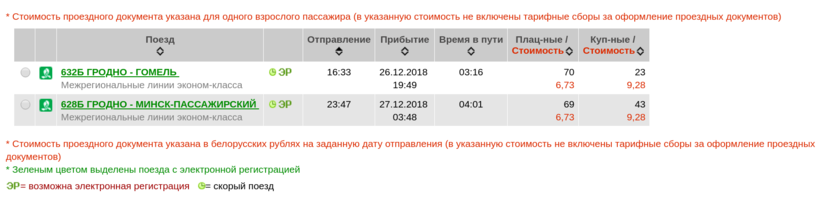 Для того, чтобы разобраться с расписанием, рекомендую зайти на официальный сайт белорусских железных дорог. Вот скриншот на произвольную дату: