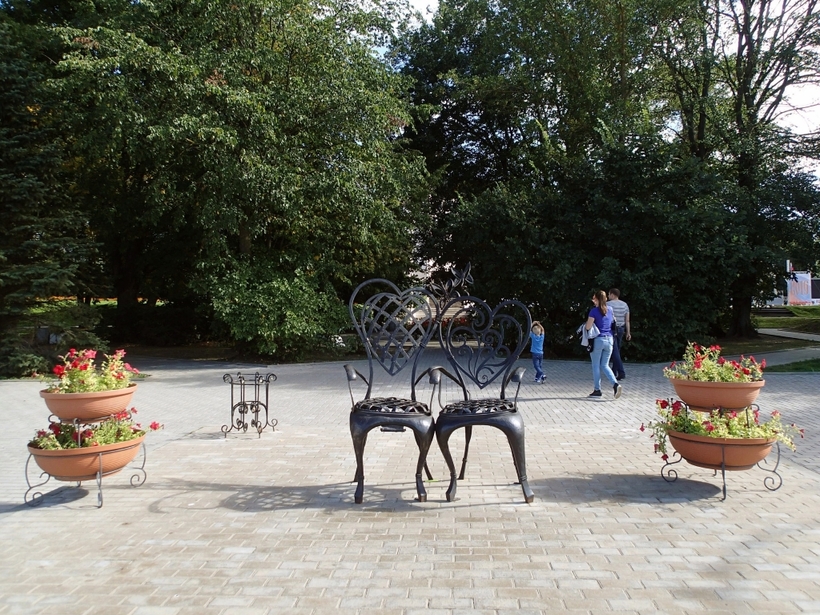 - Кресла влюблённых на проспекте Ленина (я же говорю — в любом городе есть такой проспект). Это была первая достопримечательность, попавшаяся мне на глаза. Посидели с женой, сфотографировались.