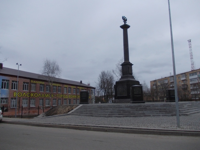 - Стела «Волоколамск — город воинской славы». Всегда лежат живые цветы. Немного портит впечатление проезжая часть перед памятником.