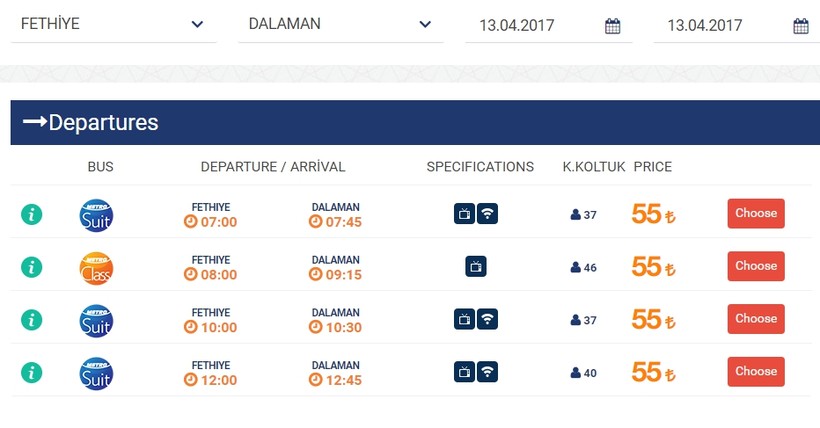 Ниже приведена информация о том, сколько часов вам потребуется, чтобы добраться от Фетхие до Даламана, а также приведена примерная стоимость проезда (средняя цена билета) на том или ином виде транспорта.