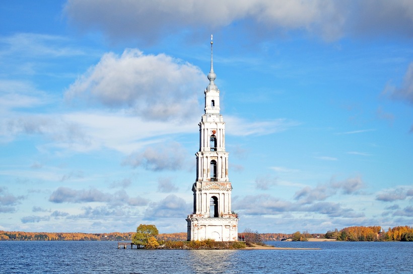Символ Калязина — плавающая колокольня. Место это по-настоящему интересное и уникальное, колокольня будто бы стоит на воде, покоряя всех своим величием и безмолвностью.
