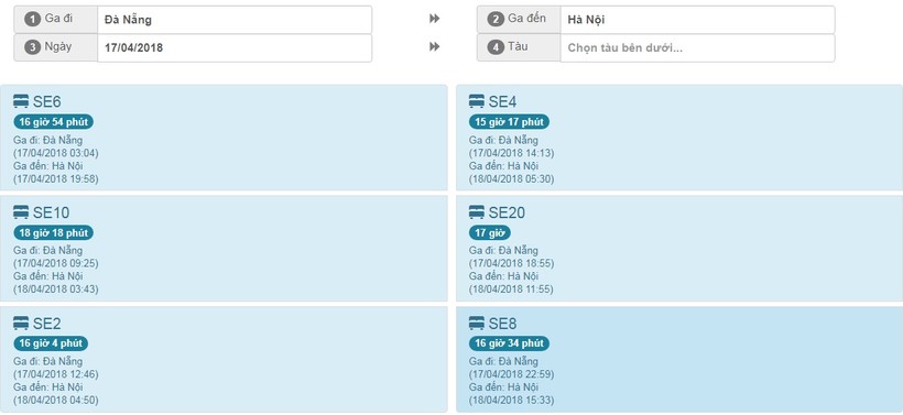 На поезде из Дананга можно доехать до Ханоя, путь не близкий и занимает 16-18 часов. Билеты советую брать на скорый поезд, например, на SE4, SE6, SE2, они будут стоить дороже, но состояние вагонов и обслуживание значительно лучше. Расписание движения есть на сайте вьетнамских железных дорог: