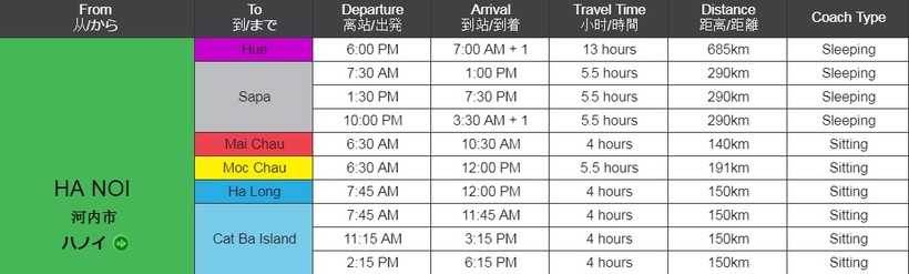В Ханой также прибывает на автовокзал, где вы можете пересесть на автобус в Халонг. Кроме этого автобуса в Ханой ездят рейсы Hanhcafe: