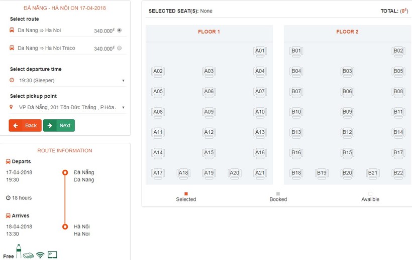 На автобусе Futabus доехать в Ханой можно за 18 часов, рейс отправляется раз в день в 19:30: